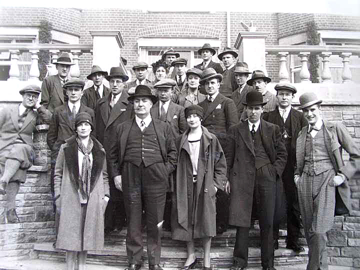 The cast and crew of The Squeaker (1930) Edgar Wallace center and the following names quoted by Herbert: Dilly Welden, camera man,Vic Green, Arthur Allcott, with pipe, Carole Reed, front right with grey bowler, Charles Evernie, Risnut, Cyril King Chief Sparks next to Herbert, middle row 3rd from left, EW's P.A. Miss Rizer on his left. Taken at Chalklands in the house that Edgar Wallace lived in for the last years of his life. It is very close to the film studios in Beaconsfield. below Warwick Ward in To Oblige a Lady (1931) also staring Maisie Gay seen here with Herbert on the set. | |||||||||||||||||||||||||