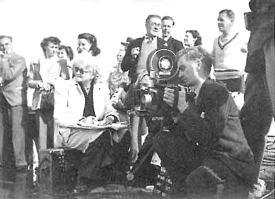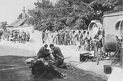 Antony Asquith in pensive mood while directing Demi-Paradise. (1943) Below are 3 shots of vintage film cameras & location lights, I can not say where they were taken but interesting for the old equipment shown. Clues as to who they are will be welcome. The one on right might be "I.ve got a Horse" (1938) A guess.
