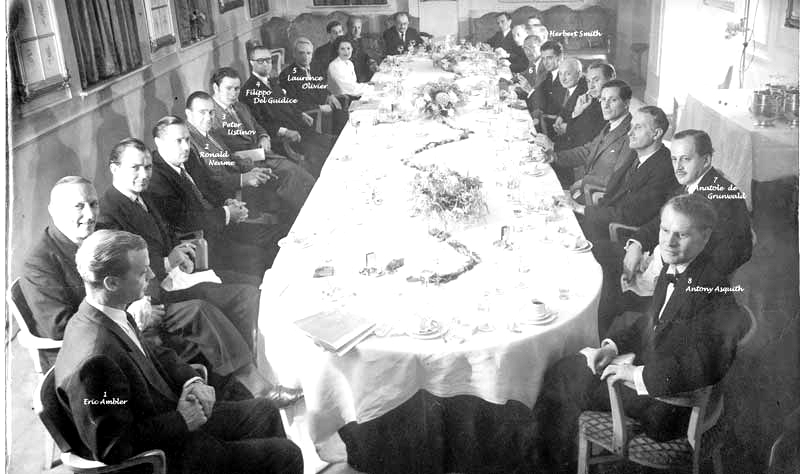 Herbert and Sam Smith, the founders of British Lion Films signing the contact for a young Margaret Lockwood. They also gave Jean Simmonds her start in films, seen above in Mr.Emmanual. Flora Robson in Fire Over England, the famous Jimmy Wong on camera. (1937) Below is a great picture of an important lunch meeting, but where and who? Can you help? see text below | |||||||||||||||||||||||||||||||||||||