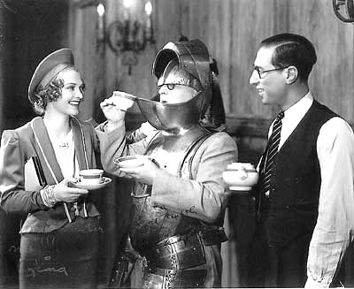 A very early shot of The Three Stooges, Moe Howard, Larry Fine and Curley Howard. c.1933.The Gent in the suite is Ernst Lubitsch, famous director of To Be or Not to Be. (1942) On the track location filming of Night Mail. (1934) Felix Alymer answers a call, and the Lion who bit off more than he can chew has Charlotte Mansfield in his mouth |