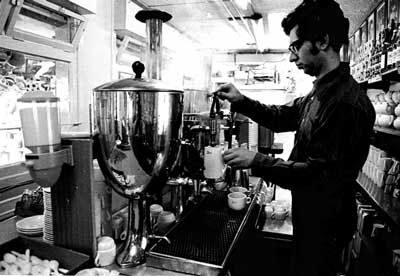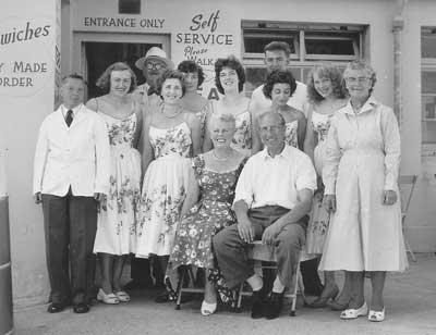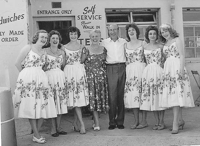 Some cafe scenes from the later years, Pav's Group with Herbert, Malcolm Dick, Colin Bagge, Gwen Hurrel, Pav, a local beauty whos name escapes me and Len. I think this is 1983. Above there are some working views of Pav's in action with Colin, Malcolm, the pretty girl in the blue T shirt is Jocelyn Phillips. |