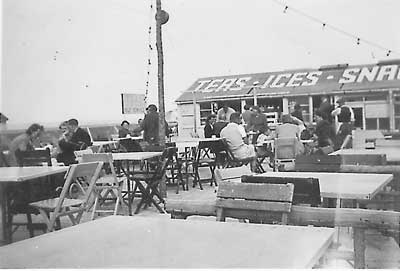Herbert bought the cafe in 1951, it was a bit of a shed with a large space outside for seating called "The Garden". Neither Herbert or my Mum ,Pav knew anything about catering or dealing with the public but they were soon to become experts on both. The first time Pav rung up a sale on the beautiful brass embossed National Cash register till, it came out and smacked her in the tummy! After really getting into the swing of seaside catering, disaster struck in the winter of 1953. The tidal wave which struck the South of England hit the cafe and destroyed everything, the ice cream fridges were last seen floating out to sea. A temporary building was used for the summer of 53. The café was rebuilt with interior seating as well as the Garden and was ready for the 54 Summer season.