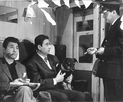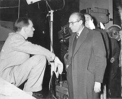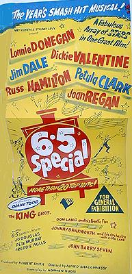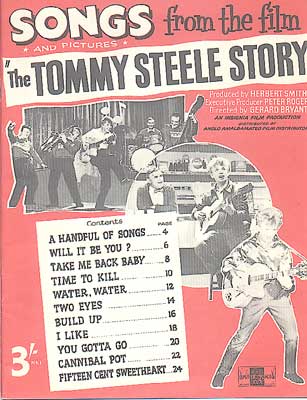 Rock'n'Roll is where I came into the story. When Sidney Box asked Herbert to do a musical film on the then new Rock'n'Roll, I was consulted, as at 12 my finger was well on the pulse of what's what on the pop scene. Tommy Steele Story was finished in 1957 just as Tommy was peaking as a rocker.See Tommy's page, click on Tommy. I am seen here on set with Tommy 1957. The great Sax player in Tommy's band was Alan Stuart, bass, Alan Weighell, Dennis Price on piano. This was also the debut of a certain Lional Bart who wrote the score. 6.5 Special also had some great musical names such as John Barry, John Dankworth, Cleo Lane. and Jim Dale, all of whom went on to do great things. © Barrie Smith 2006 |