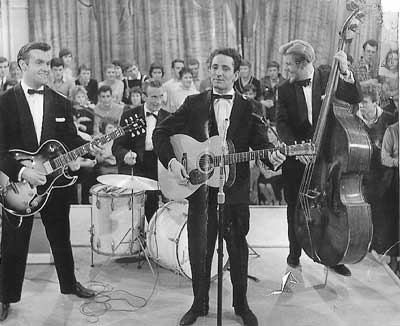 Original poster from 6-5 Special . A great portrait of Russ Hamilton with his beautiful Gibson guitar, could be a 175.The King Brothers from 6-5 Special.