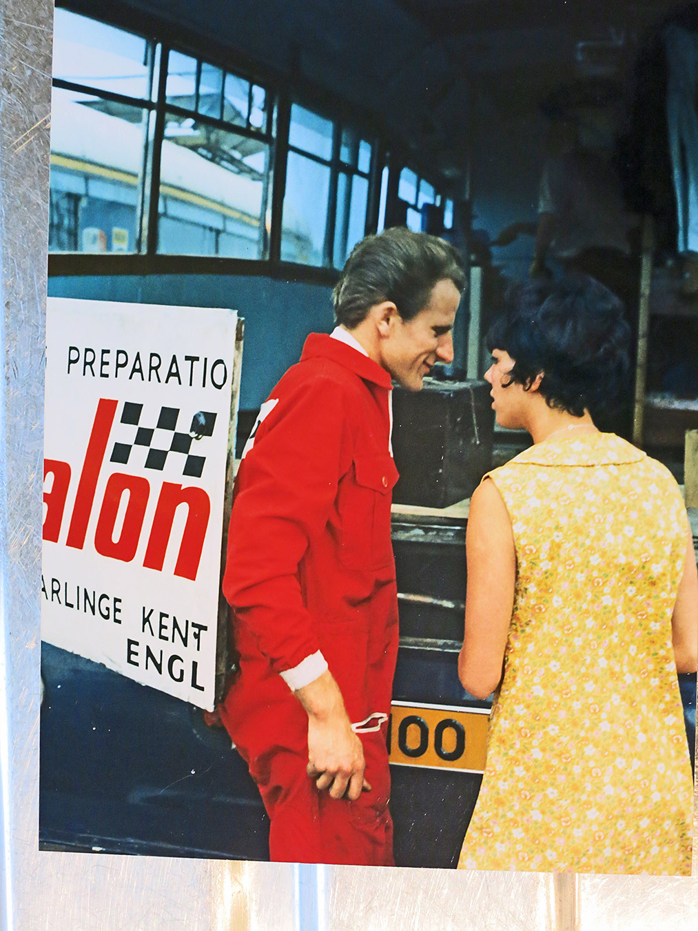 I was stuck for some months in 1970 so he came along for the crack of it and it was great to have been working with him when he helped with the T70. We did Thruxton and some Scandinavian races. In the photo he is belting me in the D&A Shells Lotus F2 car at Thruxton.